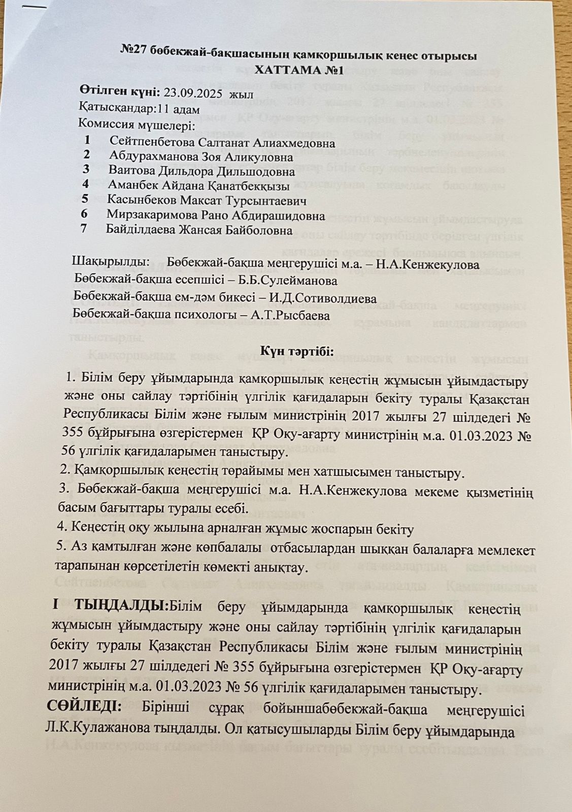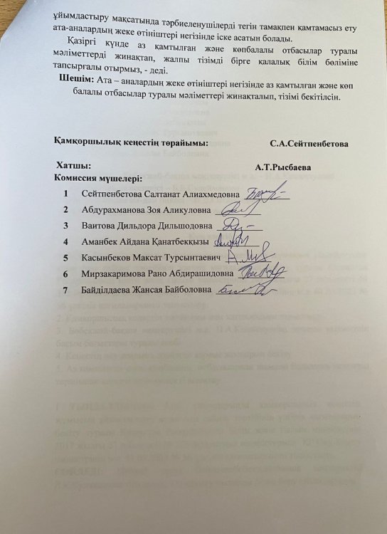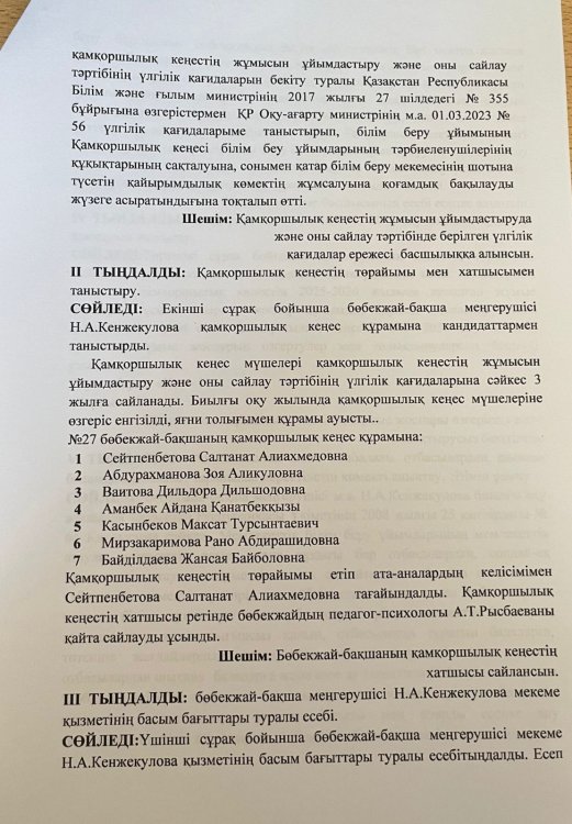 Қамқоршылық кеңес Хаттамасы » №27 бөбекжай-бақшасы